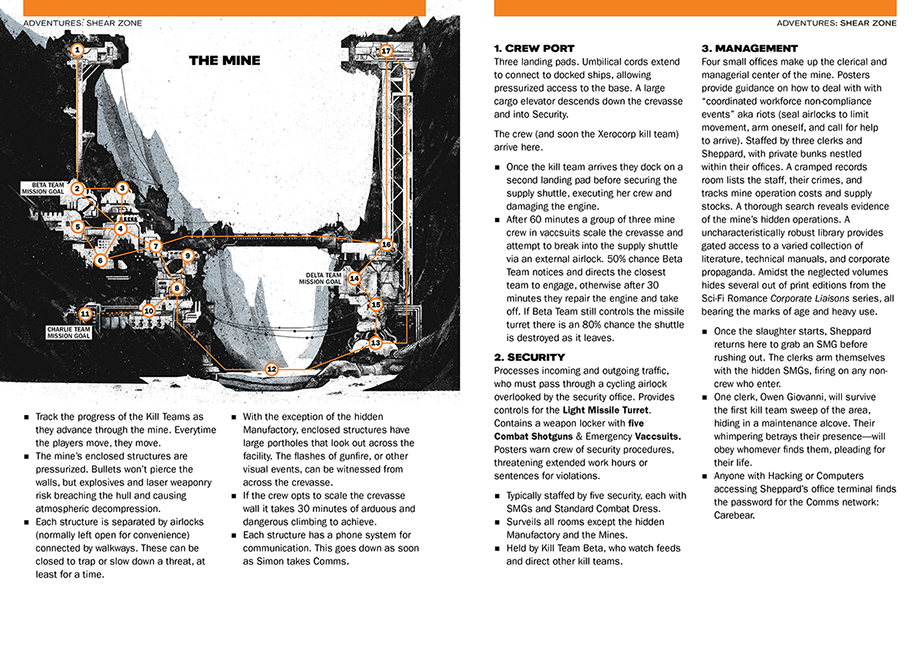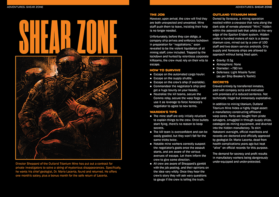 - Shear Zone by Daniel Hallinan, a murder investigation gone wrong on a remote asteroid mine, fully illustrated and ready for immediate play at your table.