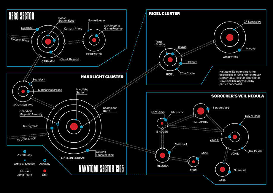 - A Preview Sector Map charting the known worlds, stations, and dangers of Nakatomi Sector 1365.